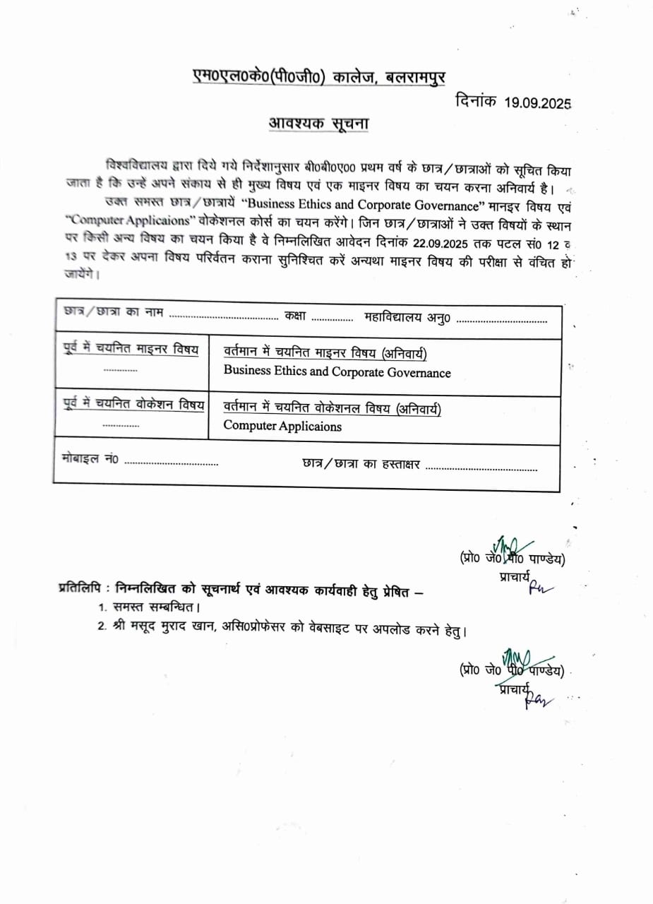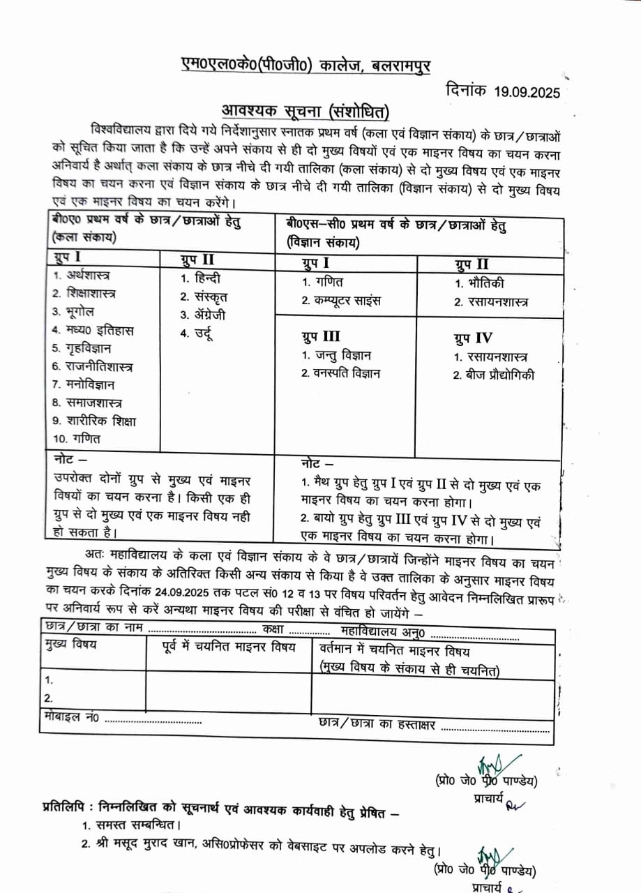 At such a time the saintly Maharaja of Balrampur Sri Pateshwari Prasad Singh so kindly created an oasis for higher academic achievement by establishing, M.L.K. College in 1955 in the pious memory of his reverend mother which covered the area of Gonda, Bahraich and Basti.